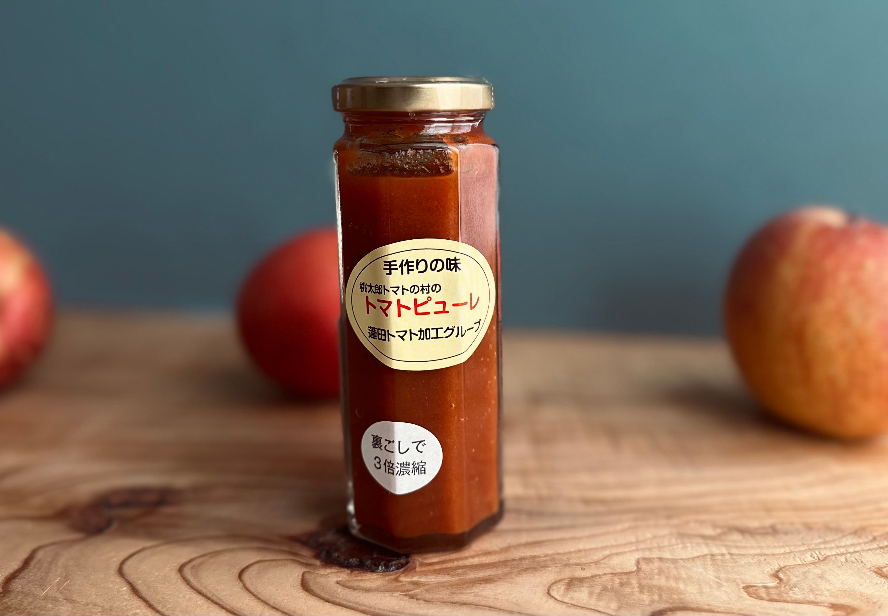 国産のトマトを濃縮したピューレやペーストは、なかなか市販でみつからない。青森・蓬田村(よもぎたむら)の、バランスの優れた桃太郎トマトでつくる濃厚な旨味。いつものトマト料理を、一層おいしく仕立てる。